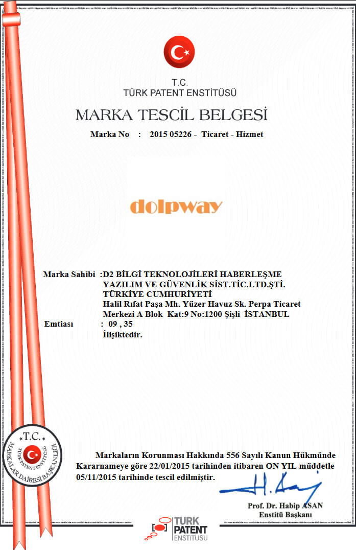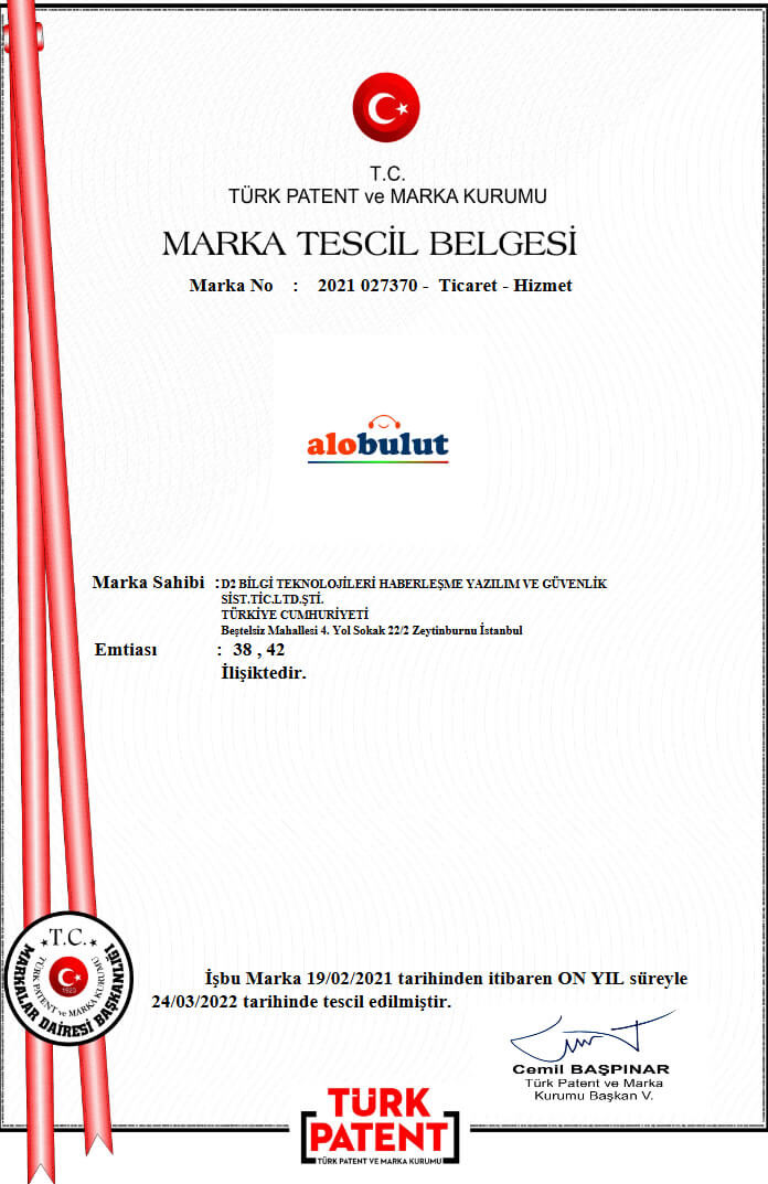 alobulut ve dolpway markaları D2 Bilgi Teknolojileri tarafından tescillenmiştir.